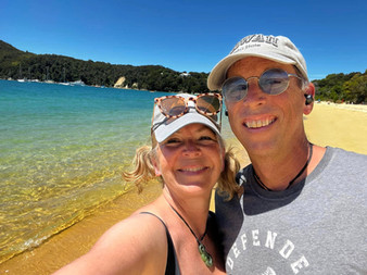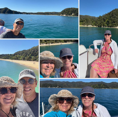 We followed the forecast and booked a Wilsons’ cruise for Friday - sailing up the coast from Kaiteriteri to Totaranui along the edge of the Abel Tasman National Park , then back to Anchorage Bay where we hopped off to picnic, swim, relax and take a wee walk to a lookout. The National Park is absolutely stunning and the sunshine made it all even more beautiful. The clear waters sparkled in a dazzling array of blues & greens, the beaches were golden strips of sand dividing the sea from the variegated green bush, and the sky was blue scattered with wispy clouds - an artists dream! We had the best time!