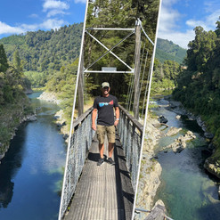We had a quick stop at Pelorus Bridge to show Linus the fabulous swimming holes there, and we wandered along to the suspension bridge to get my knees working and have a photo opp where the rivers Rai and Pelorus meet.
