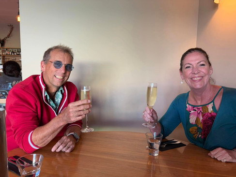 From here it was just half an hour or so back to our old haunt at Nick Goldschmidt's vineyard on Rapaura Road where we took advantage of the free parking, returned the shed key that I had accidentally taken with us and then we popped over the road to introduce Linus to the delights of the Roots Gin Shack - she did a tasting while Louis and I stuck to the mocktails and we all enjoyed a delicious small plate lunch. Next stop was No.1 Family Estate just down the road to buy a couple of bottles of bubbly for Jez for his 50th next month.