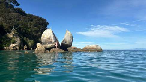 Back to Banjo for lunch and a siesta before returning to Kaiteriteri late afternoon where we did find a beachfront park and offloaded the kayak, inflated it and set off on its first voyage of 2026 - retracing our cruise steps over to Split Apple Rock - about 3kms away.
