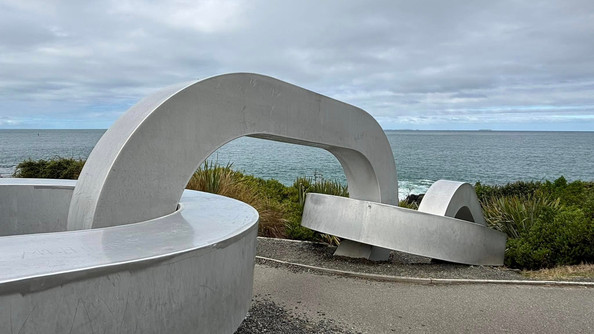 From here we took a stroll along the Foveaux Walkway to see if we could get a little further south as it looked like Lookout Point was a degree or two lower... but that was a few Kms away so we headed back and checked out the giant anchor sculpture. The Anchor is a representation from the legend of Maui who fished up the North Island from his Waka, the South Island, which was anchored by Rakiura, Stewart Island. These giant chains disappeared into the ground as if they continued under the sea to the Island.