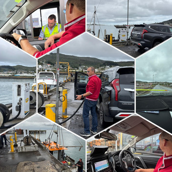 On the map there was a McKeowns CardFuel station in Bluff (seriously discounted diesel) so we headed even further south and were a little gobsmacked to find ourselves on the causeway to the port, having to sign in with IDs (skipped the safety induction!) and driving to the edge of the harbour to find the one fuel pump there… then realising the reason there was only one nozzle on it was that the other nozzle was over the ledge, filling up a fishing boat! Craziest refuelling experience ever! Fortunately we only needed about $80 worth of diesel; when we left the fishing boat was at $1700 and still filling!