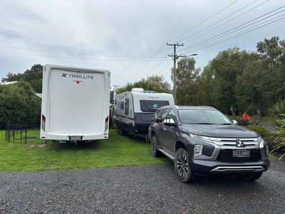 After a few false starts we found ourselves a spot at Dunedin Holiday Park that would accommodate Banjo then whizzed into town to fix a windscreen ding and accidentally spend a small fortune on some treat foods 😜
