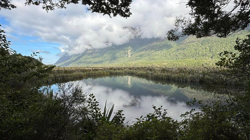 Auntie Liz came with us for the day - showing us all the key spots to visit along the route from Te Anau to Milford Sound including camping spots for future visits. Our first port of call was Te Anau Downs where boat transfers leave to take hikers to the start of the Milford Track - a 53.5km, 4 day walking track along glacial valleys, through ancient rainforests & past cascading waterfalls. It was a gorgeous calm day and this end of the lake looked so tranquil.