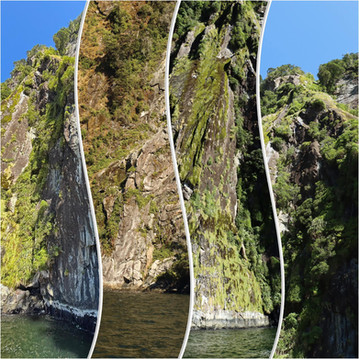 Mitre Peak may be the money shot around here - it is the tallest peak emerging directly from an ocean fiord anywhere in the world - but once you set sail it almost blends in with the other incredible steep, tall cliffs around you. Some were predominantly bare rock, others beautifully adorned with hanging gardens of trees, bushes, mosses and lichens. In some areas there were tree avalanches where one tree had lost its grip and fallen down the cliff face, taking all below it in its path.