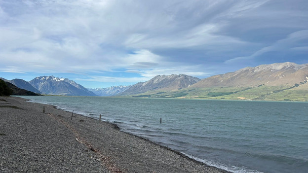 Maybe not as sunny as the day we arrived, but despite the wind across Lake Ōhau, it was a fabulous day. Day dawned grey and a little chilly but hints of blue sky boded well. My mate Shane from Montreal had packed up his tent and we had a quick chat before he hit the road - wishing him safe travels and no more spills!