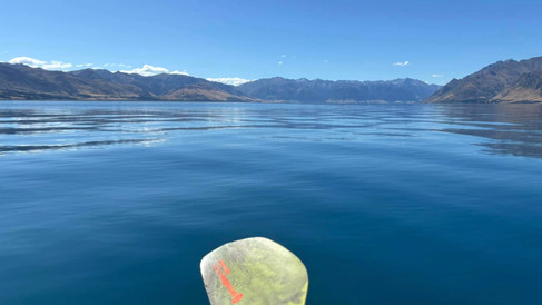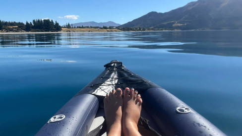 Our big excitement of the day was to take our inflatable Razor kayak out on Lake Hāwea for its inaugural outing! It took about 10-15 minutes to set up and carry down to the waters edge. Thank goodness for the SUP pump - wouldn’t fancy inflating this manually!!! Louis ordered this particular kayak from Australia as it had such awesome reviews - it is made of the same materials as a lifeguard RIB and the base is as stable as a full size paddleboard so even I will struggle to fall in!