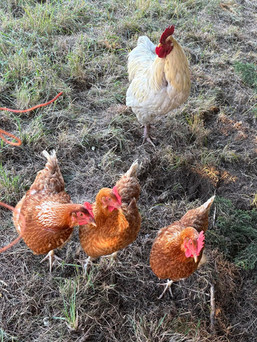 Quick dinner of cheese & ham toasties then we headed up the mountain a wee way to enjoy the golden hour and get savaged by midges! I wandered around the property after that, being fascinated by the huge number of different trees planted there - it was like a British park or a botanical garden with so many varieties (mostly non native). I loved seeing the sweet chestnut trees with the chestnuts firmly wrapped in their spiky casings until autumn. I strolled past the chook enclosure and the 6 ladies and their cockerel came running over full tilt - clearly hoping I had food!
