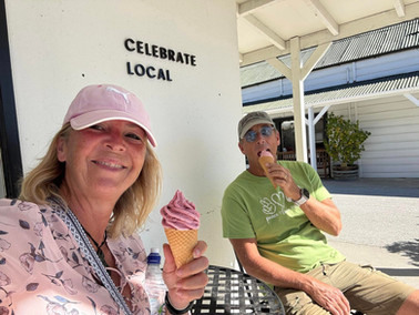 Swift stop in Tarras for a real fruit ice cream as the cafe was shut, then a brief pause in Cromwell, before heading up to Lowburn to find a spot in the freedom camp by the lagoon.