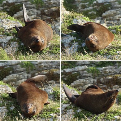 As usual the seals did not disappoint, with heaps of them draped over the rocks and some almost posing for their fans! This one seal was a real poseur - giving me the eye, and performing yoga stretches and ablutions atop this stack of rock - I was scared he might topple off! Another fella spent ages just rolling and rubbing his head lazily against the rocks and plants - so chill!