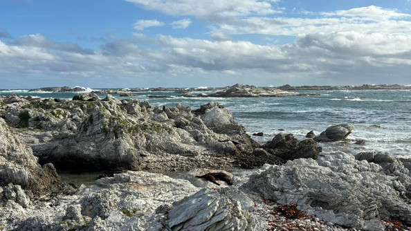 Louis was working on videos & music all afternoon, so I dragged him out to the seal colony before dinner - the clouds seemed stuck on the northern side of the bay and we had some blue skies and sunshine out our way as the waves crashed against the edge of the rocks.