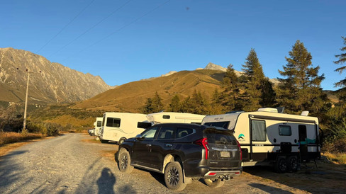 It was another stunning dawn, with the campground bathed in golden light. Leaving beautiful Aoraki we headed west to Tekapo - one day, without Banjo, we’ll try out the canal road, but for today we stuck to SH8.