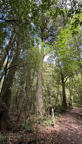 Only about 600m in, we found the biggest tree in the Big Tree Walk - a mighty thousand year old Totara standing over 30m tall, with a girth of over 8m which was pretty impressive. There were many other vast trees in the forest, including the tall but much slimmer kahikatea trees - some of which reached skyward to even taller heights.