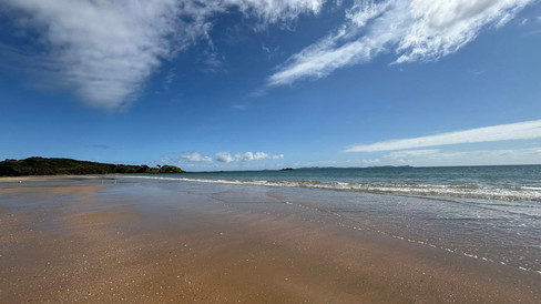 With the sun out and our plans to spend the day with Vivienne & Ivan kyboshed by Louis’ rough old lurgy (razor sharp sore throat and hacking cough) we headed north up the coast to Coopers Beach for a walk around the bay (after popping into a pharmacy to get something for Louis' horrible cough). Driving north it was interesting watching the landscape change along the way. The terrain was dotted with rocky outcrops like corks sticking out of a bottle - these were old volcanic plugs where solidified lava in the volcano's neck is harder and more durable than the softer rock of the surrounding volcanic cone which gradually erodes away.