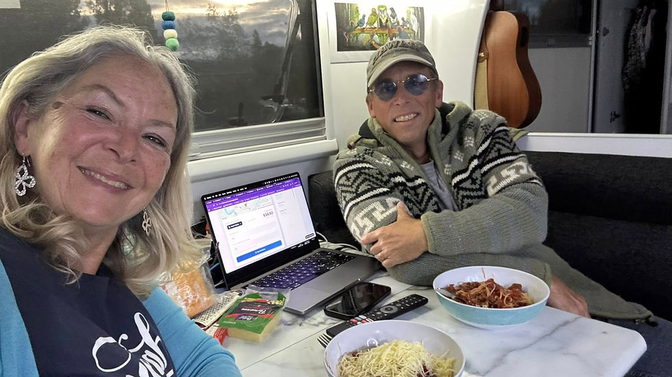 We’d shared mini Lindt eggs with our hosts, caravanning neighbours and friends on Sunday - but our focus had been on Warbirds. So Monday we paused, ate a few more choccie eggs and had an Easter video chat with my sister in London. I couldn’t find where I hid last year’s Easter decos so we bought a couple more and had them hanging above our beds all weekend.