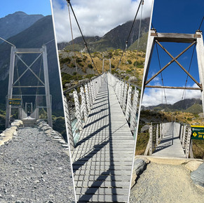 In a rare moment of cell tower coverage between two of the bridges I got a video call from my sister Caroline in London - she was zooming me into a gig featuring 80s band Cutting Crew - "I just died in your arms tonight"! We last came along this Hooker Valley Track with her in December 2022!