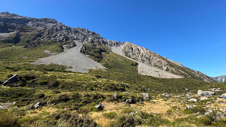 As you walked up the valley it paid to take a look back behind you - particularly to get a wide open view down the valley to the start of Lake Pukaki - or sideways at the incredible mountains on either side with huge valleys and chasms and massive rockfalls of scree cascading down the slopes.
