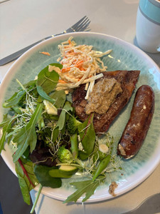 Temperatures suddenly plummeted in the evening so we ended up back in the shed kitchen for dinner and more gin! Nom nom - steak & mushroom sauce, brisket sausage & healthy salads. Started rewatching Ted Lasso - you forget just how good this show is!