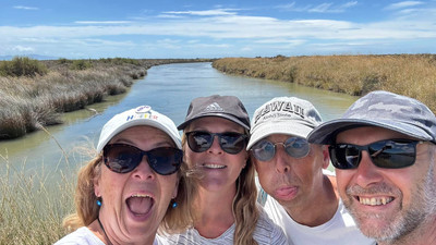 When we reached the lagoon and the rusting hulk, there was a picnic table which we were quick to nab, before a family of 3 generations of cyclists showed up. They were hysterical - teens climbing all over the wreck, kids play fighting like pirates, grandad proclaiming there actually were pirates and that after the next ride back he might need a defib!