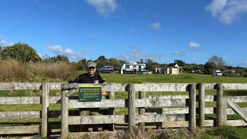 After a tricky stop at the dump station in Warkworth (where we were helped out by a lovely smiley guy from Vector) we pressed on to Matakana and took the road towards Tāwharanui… then accidentally sailed past the gate for our POP at Willow Park 😳 With nowhere to turn a big rig we had to head all the way down to the lodge about 8km along the peninsula before we found a suitable driveway to back into & turn around! A gorgeous and very over excited German Shepherd came hurtling out from the Lodge to help us out with our manoeuvre and had to be rescued by some locals! I was rather taken with the house at the end of the driveway we reversed into - wouldn't mind buying this little beauty!
