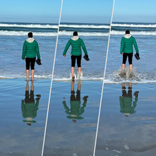 Nickie and I went for a chilly paddle and recorded the moment as "Dibbling for Debbie" - Nickie's sister in the UK. I love the arms out in horror stance in the middle of the paddling triptych!