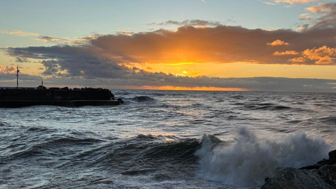 Did some work, some laundry (where I met Cleo the smoochy pup, and found a Sallies to raid for another summer T-shirt), Louis found a pool to swim at then we ended the day with a walk out to the end of the quay, dinner in the sunshine then sunset over the Tasman Sea.