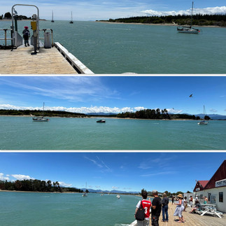 After my early morning stroll around the campsite, we set off in glorious sunshine to visit Māpua and its charming & picturesque wharf. It was an easy drive past familiar names from previous visits - Seifried Wines, Rabbit Island. Moutere etc.