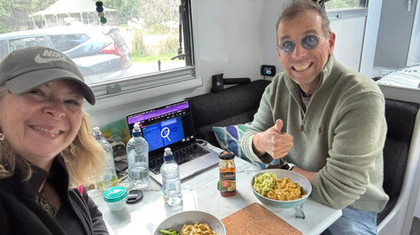 Cooked curry for dinner in the kitchen and chatted to some fellow campers. Final task for the day was tag-team showering at the facilities - saving money by using one $2 worth of hot water between the two of us! Happy to have clean hair & no more 80s shaggy perm!!!