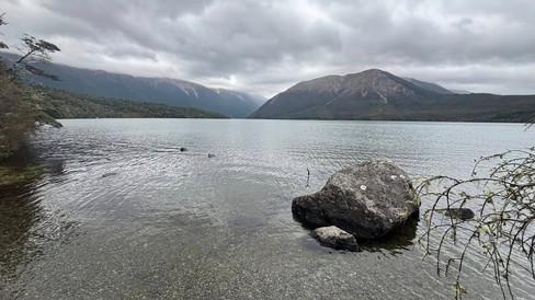 After lunch and another mallard visitation, Louis worked on some music and I got a bunch of laundry done (great facilities for a DOC camp) before we set out on a lakeside stroll to the east of Kerr Bay, until the path got too soggy and we turned back.