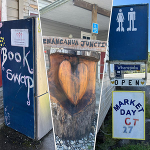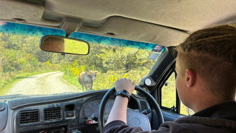 At Inangahua we stopped to a quick look around and a wharepaku stop. I loved the fridge swap with the compulsory selection including Dan Brown, 50 Shades and a Maeve Binchy! The speciality of Inangahua seemed to be large, roughly hewn wooden or stone hearts which adorned gates, cafes and memorials. Very cool! From here we had no choice but to head to our POP of choice as the main highway was closed and detouring past their door along Brown Creek Road. Sadly, on arrival, after meeting Jeremy & his son Corey, who took us up to the POP site we had to admit defeat as the track was partly washed out and too gnarly for Banjo. Corey was a star taking us up the rough as guts track in his unsprung 4WD - and we almost had a run in with a wandering bull on the way up... he eyed us suspiciously, started to charge at the vehicle then thought better of it! I think the POP will be great when some work has been done on the track and the pad where vans can park - but it was too wild and muddy for us at this point.
