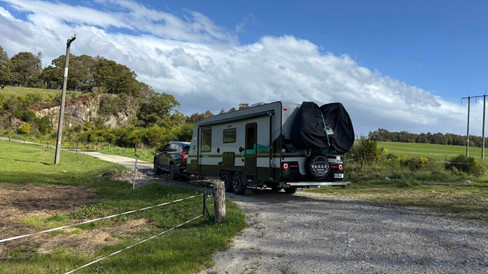 Quick change of plans - we rang the Reefton Hotel who said “head over, we might have room” so we drove past fields of rainbows to Reefton. But it turned out that they didn’t have space for us, with 5 other campers and a long articulated truck parked up there already so next call was to the Nuttalls who had a POP (with power) on their drive and yay - it was available!