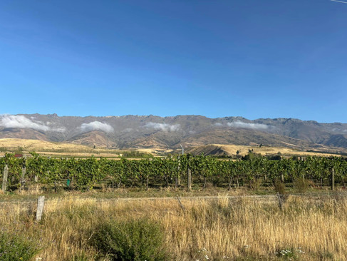 This bizarre pimple of a hill on the northern edge of Cromwell sits on the 45th parallel - exactly half way between the Equator and the South Pole! As well as multiple fruit orchards we also passed a number of vineyards and loved the floaty clouds drifting over them below the mountains behind!