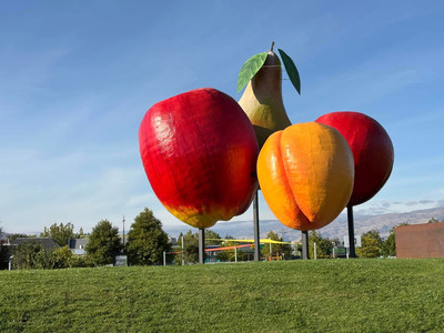 Stopped for a coffee and a quick bite in Cromwell, had doggo hugs with Fergus the leaning Labrador, took the obligatory shot of the giant fruit (representing the area's prolific orchard output) then headed on northwards up the lake’s western edge and then the Clutha River to Wānaka.