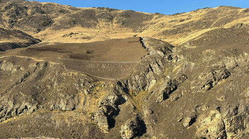 Up near the top of the lake was a strange terraced affair cut into the cliffs quite a way above the lake - Jonny informed us that this was to hold back an unstable part of the hillside. A large rockfall in this area could cause a tsunami high enough to breach the dam wall and flood the township of Clyde!