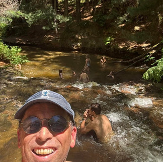Later in the morning three of us had a leisurely stop for tea & coffee at Cafe Dynasti, before Abby & I hit the local op shop (came away empty handed) then wandered back to the campsite. After dropping a coffee back to Jez, Louis, Abby & I headed into Rotorua itself to do some important shopping - hiking boots and bath mats (odd combo) before heading south towards Waiotapu to soak in the geothermal waters of Kerosene Creek - Hakereteke stream.