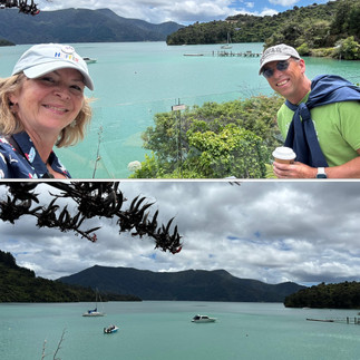 We stopped at Te Mahia resort to admire the views, get a coffee and a ginger crunch and find out where the walking tracks started - not there it turned out! Still, sitting look out over Kenepuru Sound wasn't a bad way to recover from the swirly drive over.
