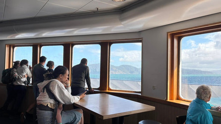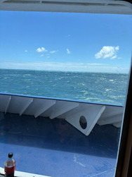Coming out of the heads at Wellington end was pretty gnarly as we hit the Cook Strait, with a 6m swell and howling gale! The outside decks were quickly closed to passengers, and a bunch of hardy souls lined up along the front windows and cheered loudly as the waves occasionally hit the L5 windows which must have been 20m above the water line.